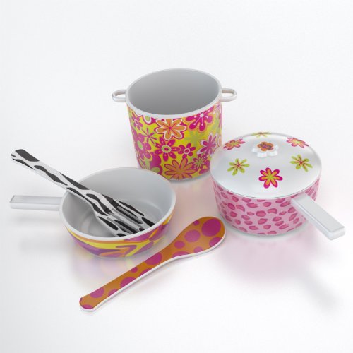 Calling all cooks to the kitchen These groovy pots and pans will bring your favorite darlings all sorts of tasty and imaginative ideas to cook up6 piece set includes fry pan stock pot sauce pan with lid spoon and spatula Girls sized cooking set Part of the Groovy Girl collection from Manhat Read More..